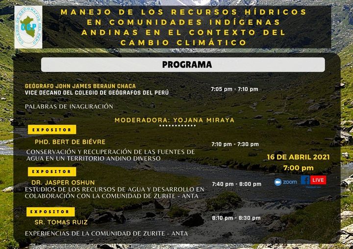 El Colegio de Geógrafos del Perú mediante la Comisión de Geografía y Cambio Climático presentó el evento «Manejo de Recursos Hídricos en Comunidades Indígenas Andinas en el Contexto del Cambio Climático»